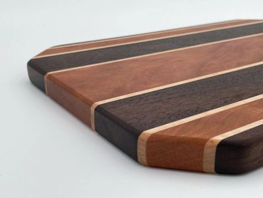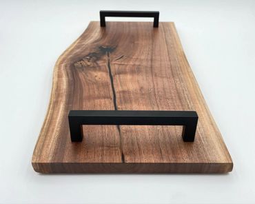 One of our most popular products is charcuterie boards made from slabs of wood. These one-of-a-kind trays are most often constructed from a single piece of attractive wood and then finished with handles. Not only are they perfect for charcuterie spreads, but you'll find that our trays have a multitude of household uses from storing and transporting food to acting as decoration. Everything is customizable from the species of wood to the type of handles. Other designs are also available and may be featured in our gallery or on our social media.